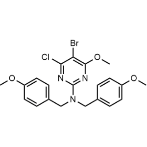 产品名称:5-Bromo-4-chloro-6-methoxy-N,N-bis[(4-methoxyphenyl)methyl]-2-pyrimidinamine